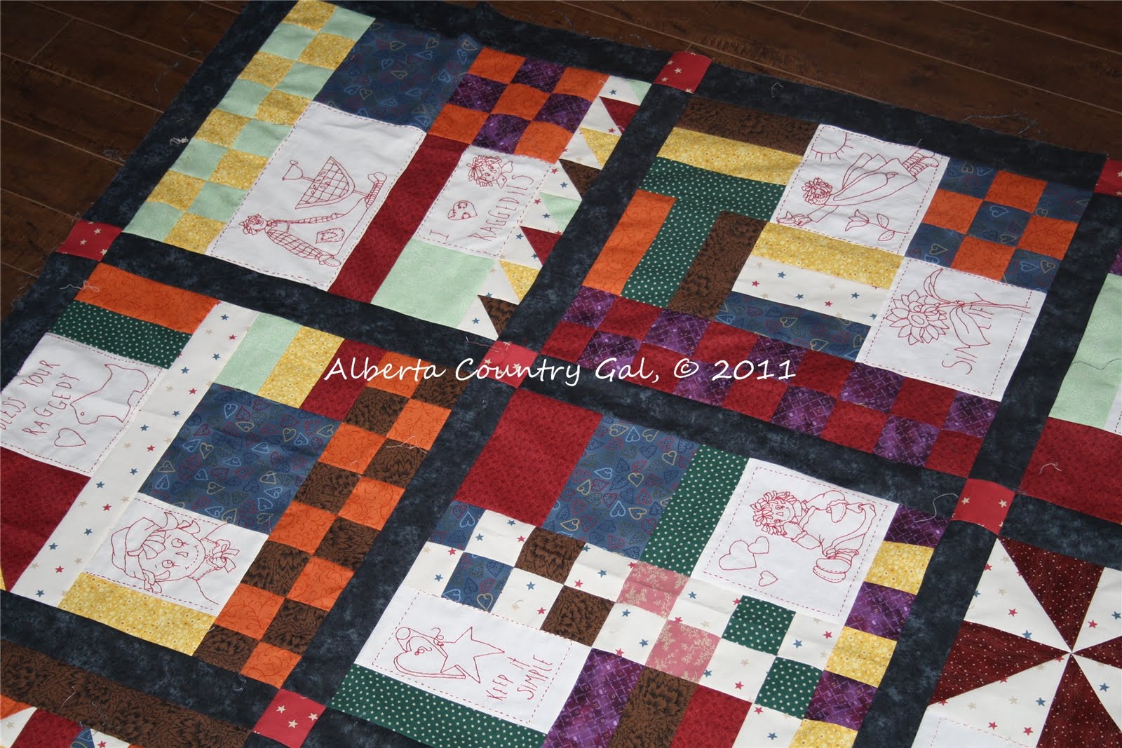 Ok now on with it... I have finally finished my Raggedy and Friends top.. You get a lot done when you don't have email, texts or BBM's. I am sure that my production will be going down now that I have it back....